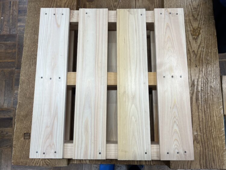 最終的に2グループで1台ずつ、パレットが完成しました。自分たちで協力し、最後まで作り上げたこの日の達成感が、将来の仕事ややりたいことに繋がると嬉しいです。