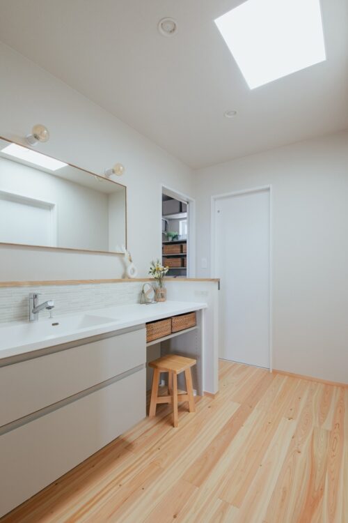 また、洗面脱衣室も悩みますね。湿気が気になる、室内干しも兼ねているので換気したい、という声は多いです。ただ、そもそも洗面脱衣室であるため防犯の面などを考えると当然大きな窓を付けることはありません。また、洗面台や衣類乾燥機などが壁側に並んでいると、その上に窓を取り付けることになります。換気を目的とした窓の場合は、開け閉めが大変困難になります。