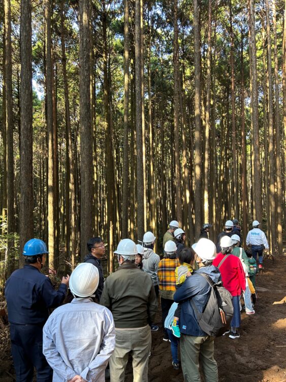 建築中のお施主様、ご契約後打ち合わせ中のお客様、フジモクの家での建築をご検討中のお客様が参加してくださり、構造材として使われる「富士ヒノキ」が育つ山について勉強に行ってまいりました。