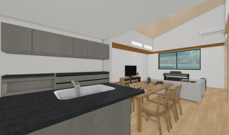 ・アイランドキッチン×勾配吹き抜けで開放的なLDK