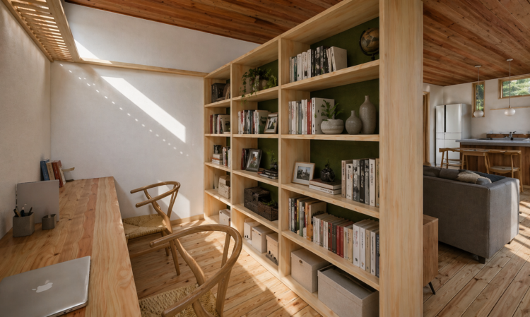 キッチンは五貫島展示場を参考に、ウッドワンを採用。キッチン・ダイニング・ワークスペースと木目をベースに、床は富士ヒノキの無垢床で、落ち着きのある空間に仕上げています。又、愛猫のために、書斎スペースには、のびのびと自由に運動ができるキャットウォークを配置。