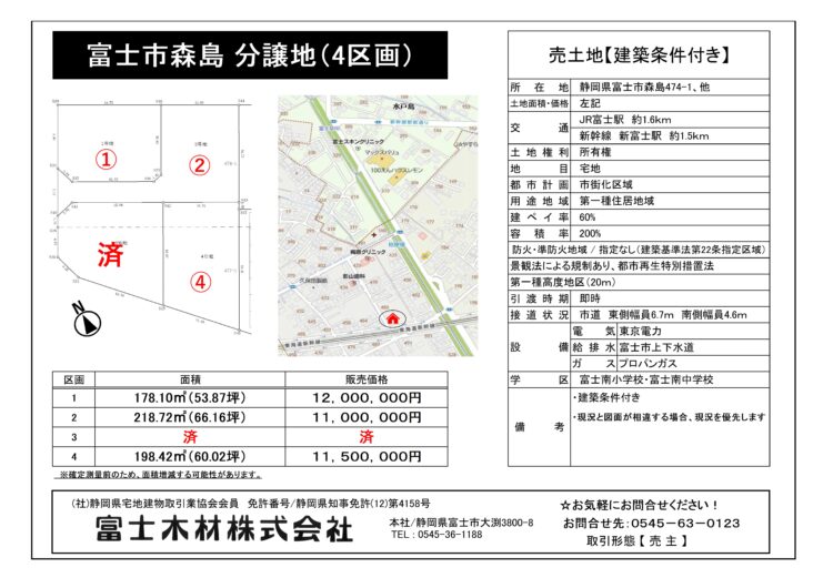 〇富士市森島分譲地(残3区画) ※建築条件付宅地分譲