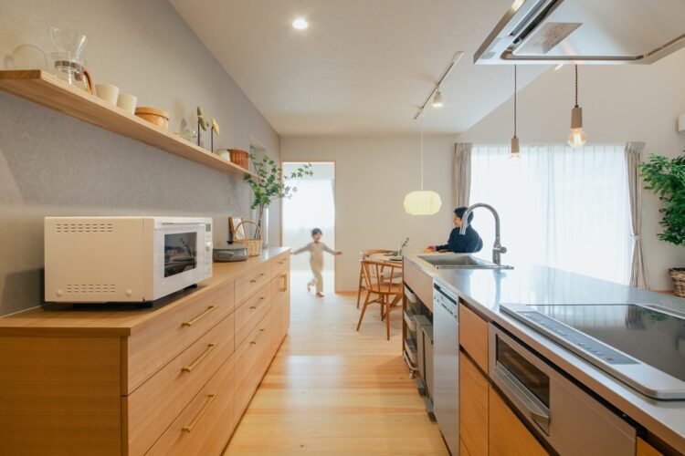 フジモクの家展示場「五貫島の家」では、ご家族の中心となるリビングやダイニング、キッチンなどの動線や使い心地を実際に見て、触れてご体感いただけます。 また、間取りプランや資金計画に関するご相談も承っておりますので、まずはお気軽にご来場のうえ、住まいづくりの疑問やお悩みをお聞かせください。